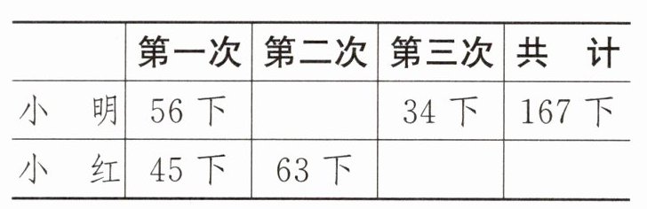 3. (探究题)小明和小红三次跳绳的情况如下表: