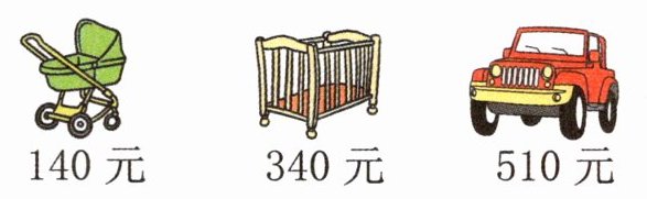 (1)3辆儿童推车比1张儿童床贵( )元。