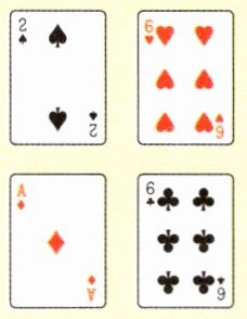 2. 你能用下面每组4张扑克牌上的数算得24吗?