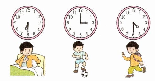 例题1 下图中的男孩在什么时间做什么事情?你还会用其他方法来表示这些时间吗?