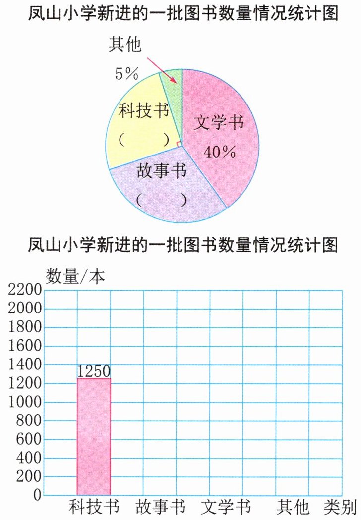 2. 下面是凤山小学新进的一批图书数量情况统计图。已知科技书有1250本,请你完成统计图。(8分)