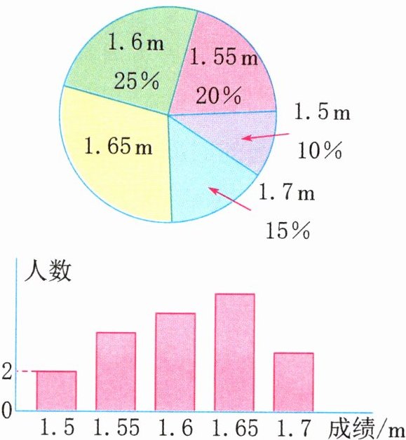 $1 - 25\% - 20\% - 10\% - 15\% = 30\%$ $2\div10\% = 20$(人) $20\times15\% = 3$(人) $20\times30\% = 6$(人) $3 + 6 = 9$(人) $9 = 9$ 成绩为1.65 m的小涵能进入决赛