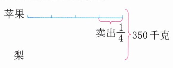(5) 水果店购进苹果和梨一共350千克。如果苹果卖出$\frac{1}{4},$那么剩下的苹果和梨同样重。水果店购进苹果多少千克?(先把线段图补充完整,再解答)
