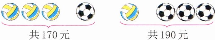 (1) 买3个排球和1个足球需要付170元,买1个排球和3个足球需要付190元。买1个排球需要付( )元,买1个足球需要付( )元。