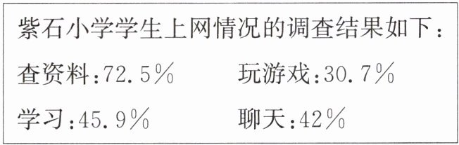 误点分析:错误解法错在未注意到被调查的学生中,有同时选择两项或两项以上的,选择项目有重叠,所以上面的调查结果不能用扇形统计图表示。虽然调查结果中的百分比反映的是各部分数量与总数量之间的关系,但是各百分比之和大于100%,而扇形统计图中各百分比之和一定是100%。