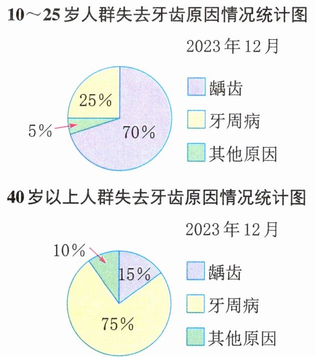 (2)接受调查的人中,10~25岁的有120人,其中因为龋齿失去牙齿的有( )人。
