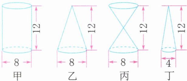 3. 下面四个立体图形的体积之间的关系正确的是( )。(单位:cm)