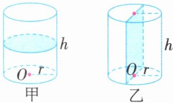 1. 下面是甲和乙对同一个圆柱的两种不同的切分(平均分成两部分)方法。甲切分后,表面积比原来增加( );乙切分后,表面积比原来增加( )。