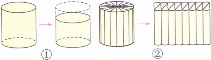 10. 一个圆柱,如果把它的高截短3厘米(如图①),那么表面积减少94.2平方厘米,这个圆柱的底面半径是( )厘米;如果把原圆柱平均分成16份后拼成一个近似的长方体(如图②),那么表面积比原来增加100平方厘米,原来圆柱的体积是( )立方厘米。