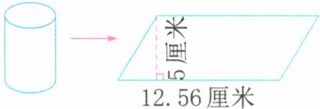 5. 如图,把一个圆柱的侧面展开得到一个平行四边形,这个圆柱的侧面积是( )平方厘米,表面积是( )平方厘米,体积是( )立方厘米。
