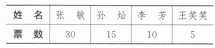 5.(创新题)合唱兴趣小组要从张敏、孙灿、李芳、王笑笑这四名学生中评选出一名“唱歌小能手”,采取投票的方式进行评选,每人投一票,投票结果如下表。