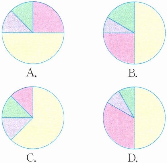 下面的扇形统计图中,能表示这四名学生的得票结果的是( )。