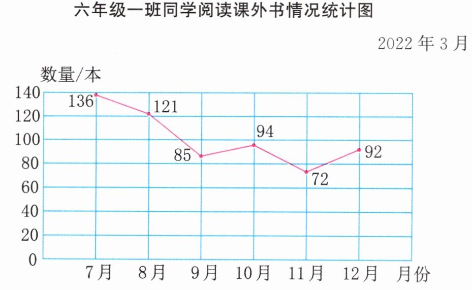 (3)答案不唯一,如阅读漫画书和童话书的本数差不多;阅读课外书本数最少的是11月,最多的是7月;六年级一班一共有45人。
