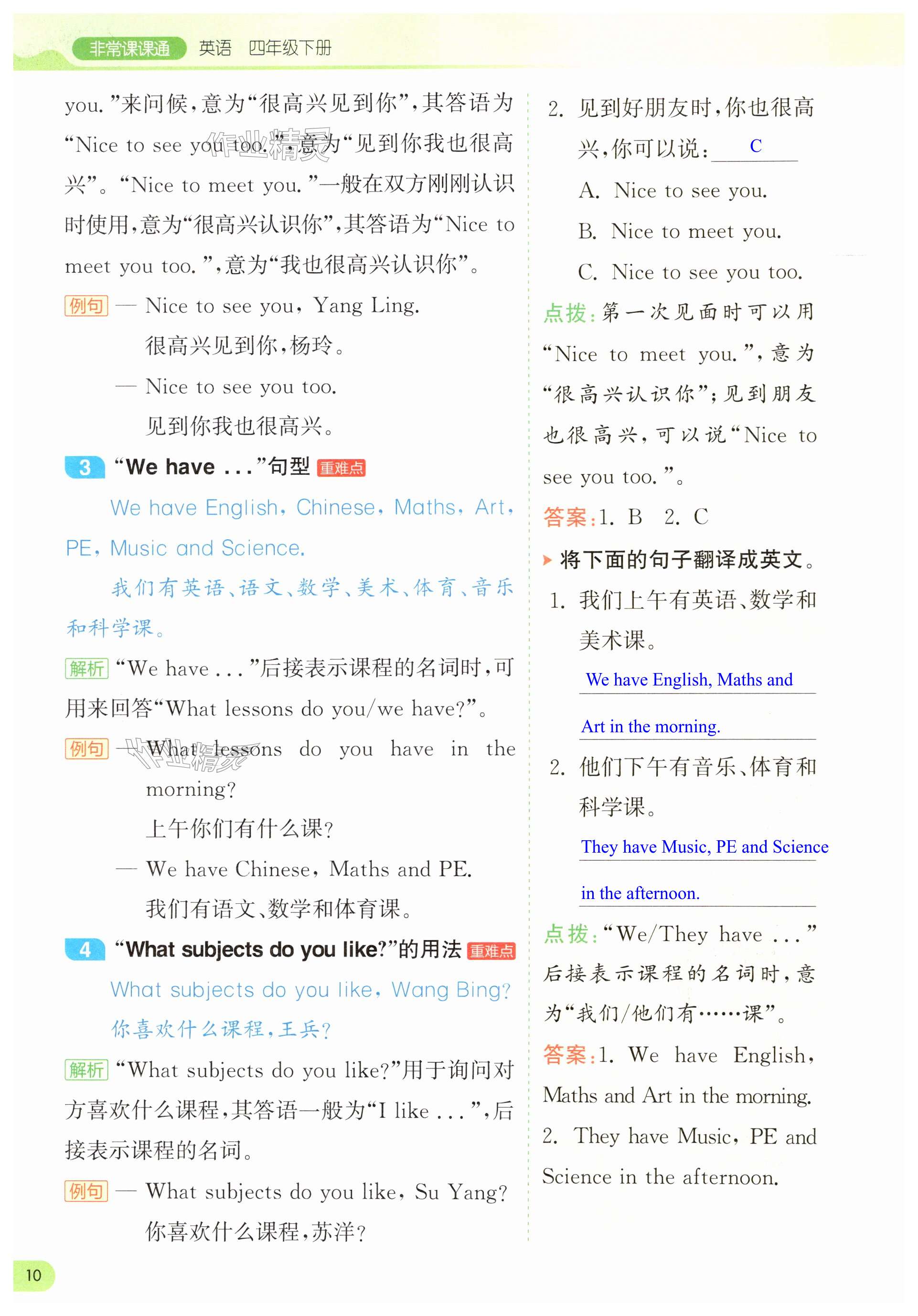 注:目前有些书本章节名称可能整理的还不是很完善,但都是按照顺序排列的,请同学们按照顺序仔细查找。练习册 2025年通城学典非常课课通四年级英语下册译林版 答案主要是用来给同学们做完题方便对答案用的,请勿直接抄袭。