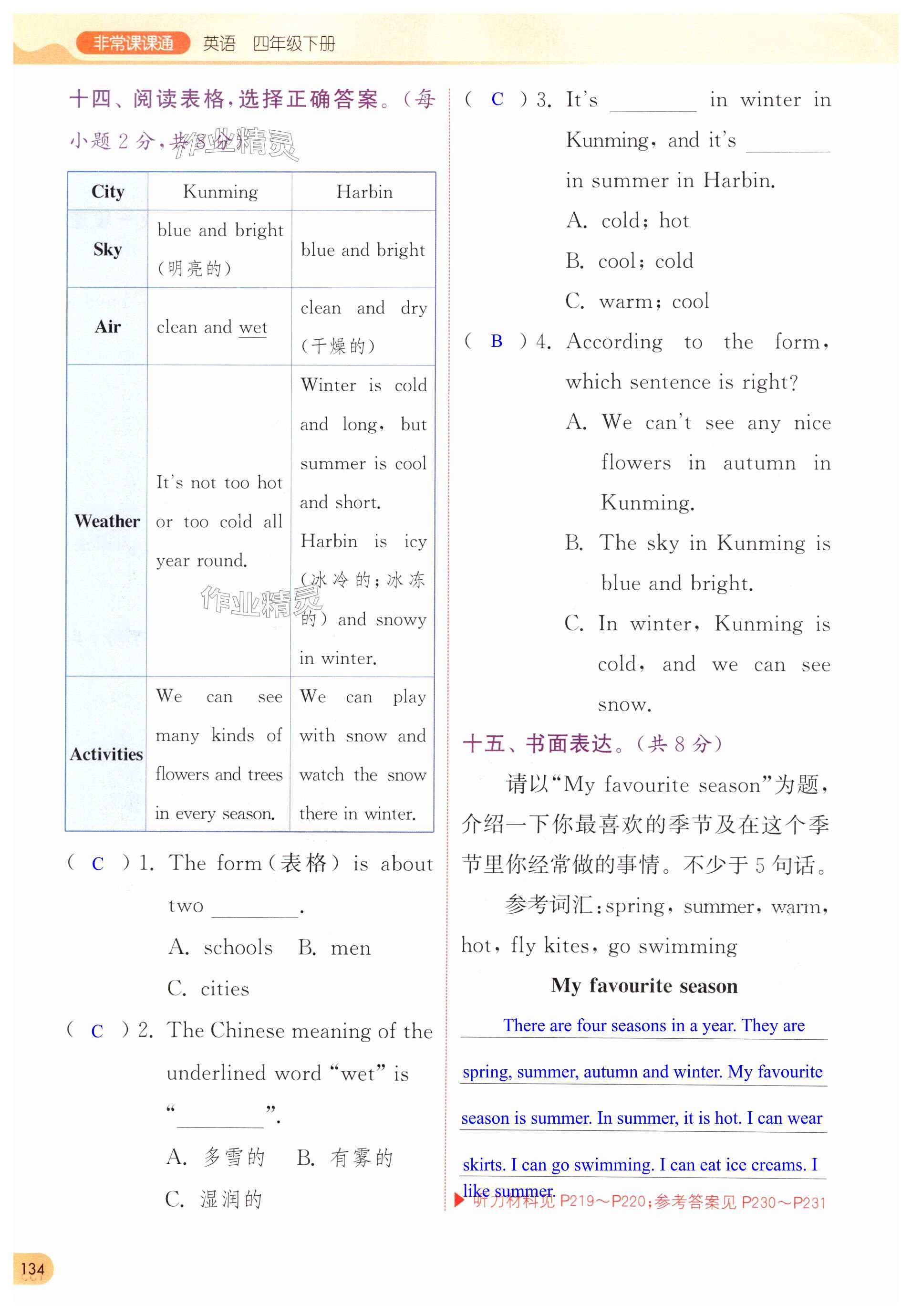 注:目前有些书本章节名称可能整理的还不是很完善,但都是按照顺序排列的,请同学们按照顺序仔细查找。练习册 2025年通城学典非常课课通四年级英语下册译林版 答案主要是用来给同学们做完题方便对答案用的,请勿直接抄袭。