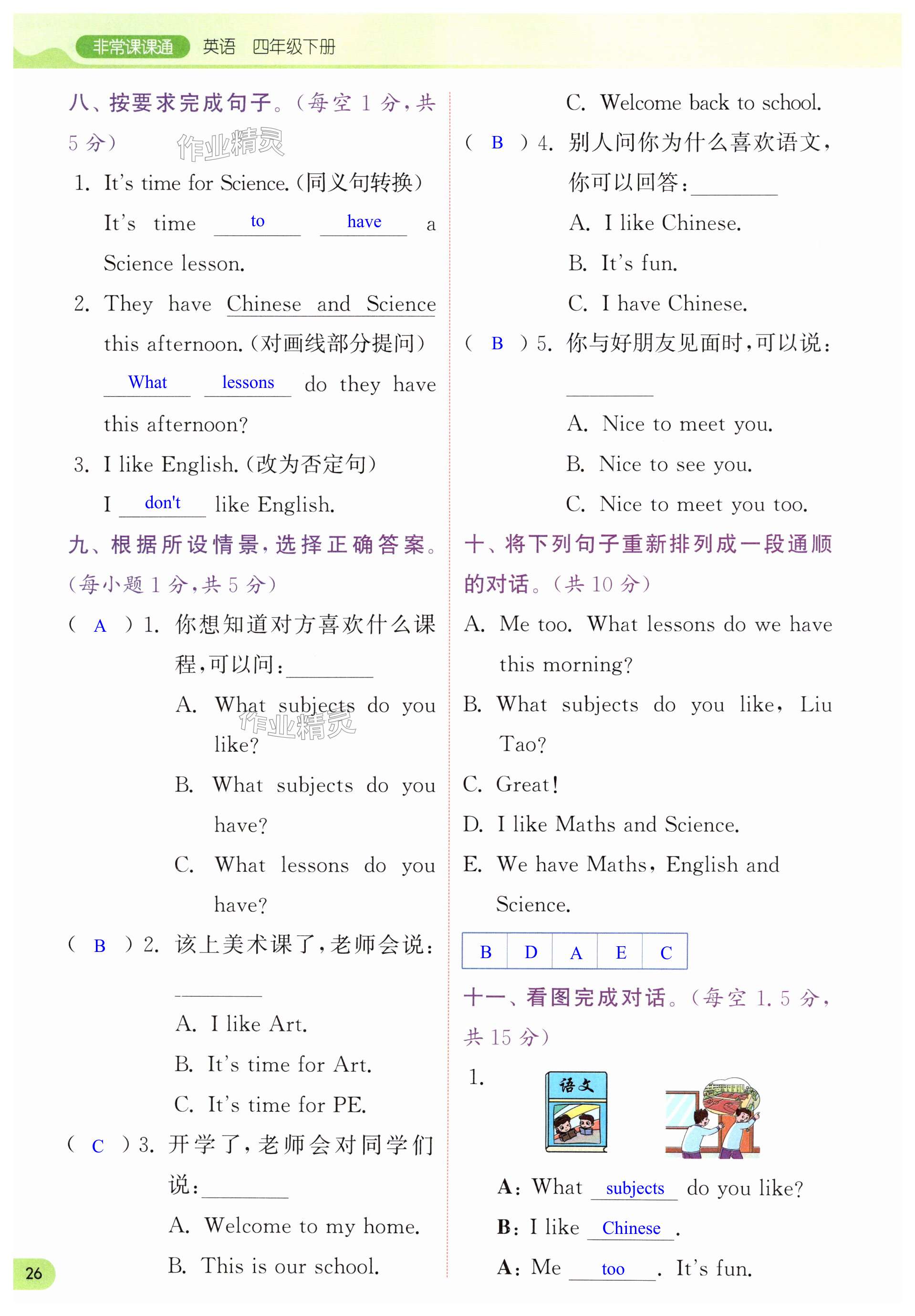 注:目前有些书本章节名称可能整理的还不是很完善,但都是按照顺序排列的,请同学们按照顺序仔细查找。练习册 2025年通城学典非常课课通四年级英语下册译林版 答案主要是用来给同学们做完题方便对答案用的,请勿直接抄袭。
