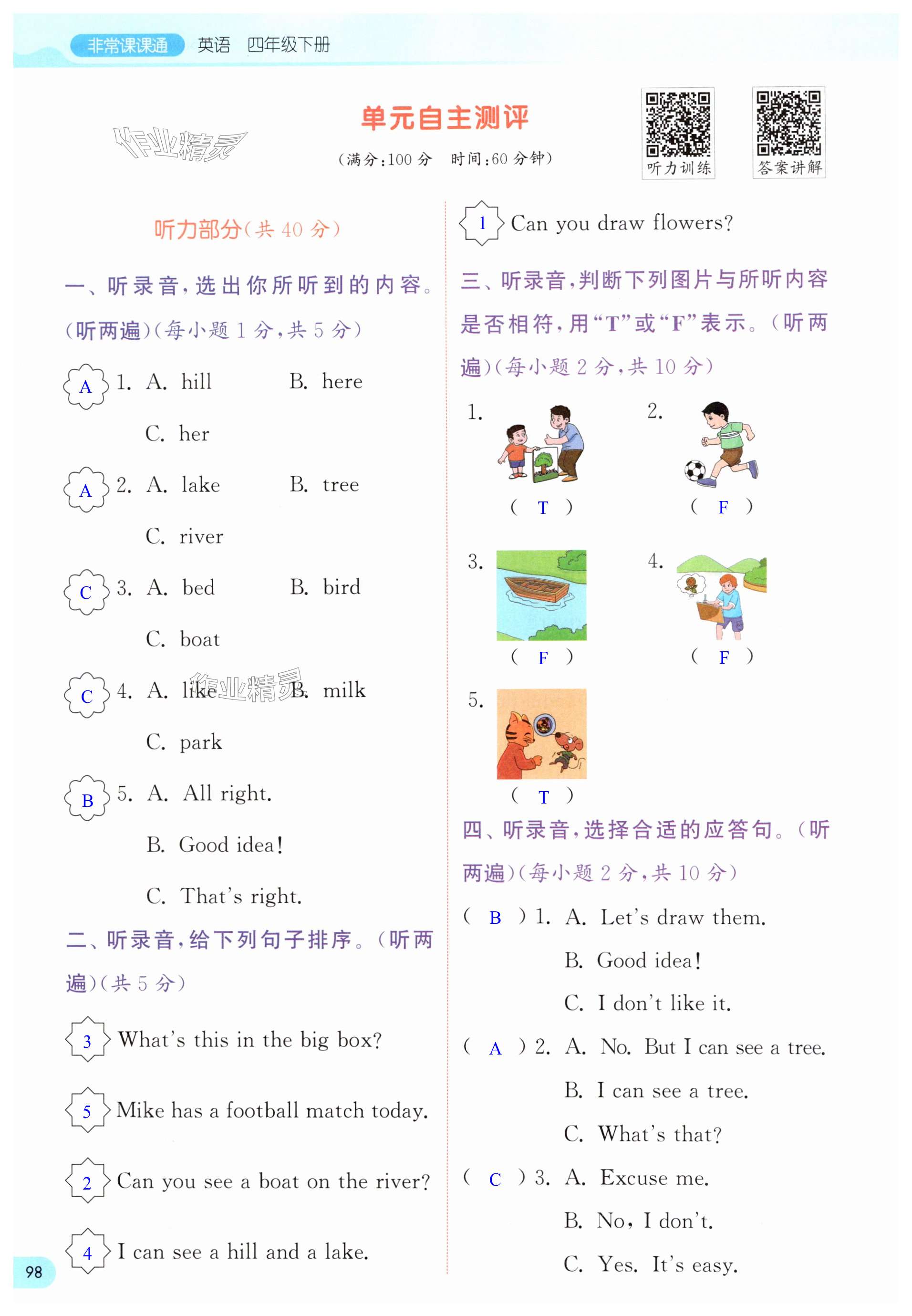 注:目前有些书本章节名称可能整理的还不是很完善,但都是按照顺序排列的,请同学们按照顺序仔细查找。练习册 2025年通城学典非常课课通四年级英语下册译林版 答案主要是用来给同学们做完题方便对答案用的,请勿直接抄袭。