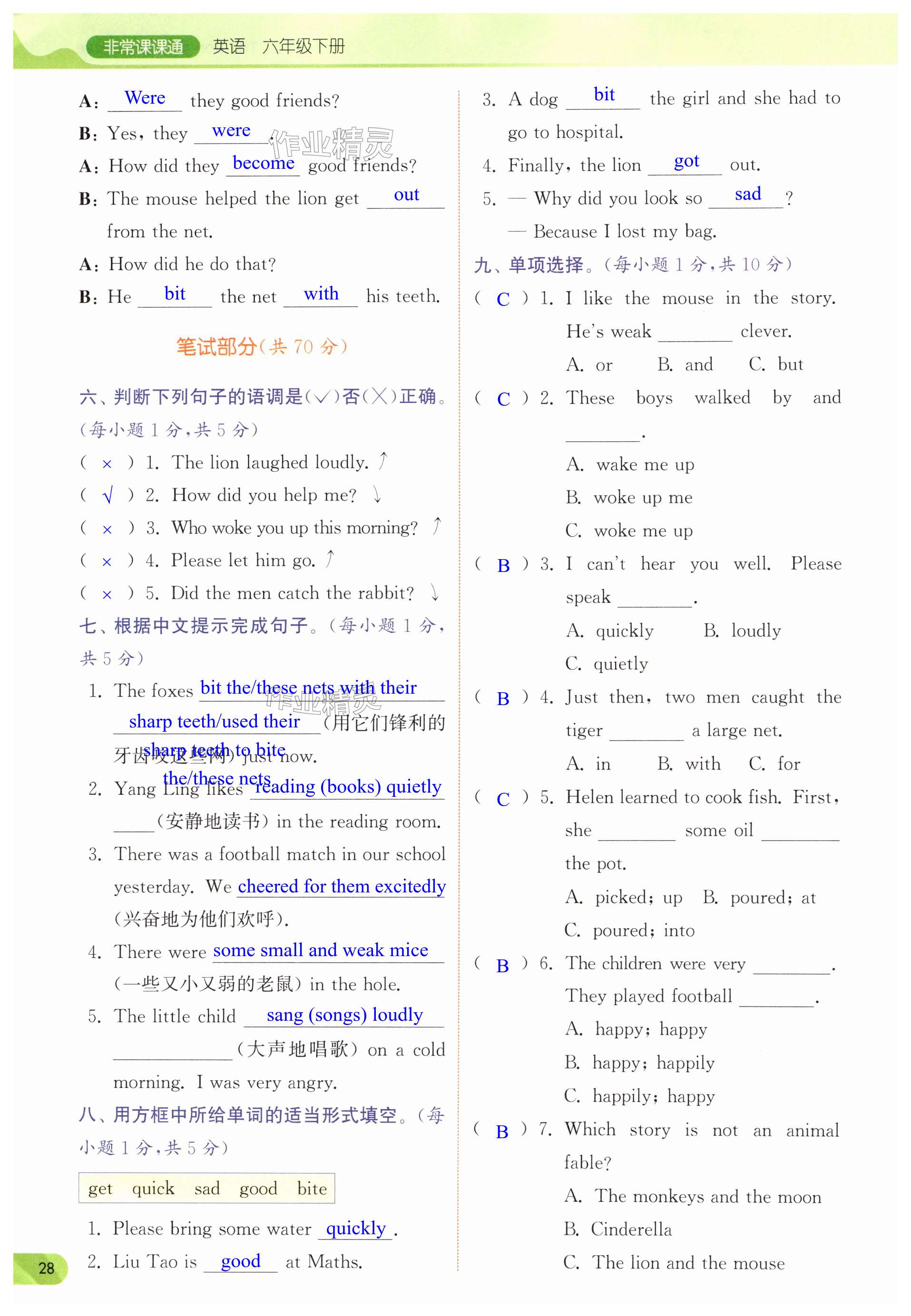 注:目前有些书本章节名称可能整理的还不是很完善,但都是按照顺序排列的,请同学们按照顺序仔细查找。练习册 2025年通城学典非常课课通六年级英语下册译林版 答案主要是用来给同学们做完题方便对答案用的,请勿直接抄袭。
