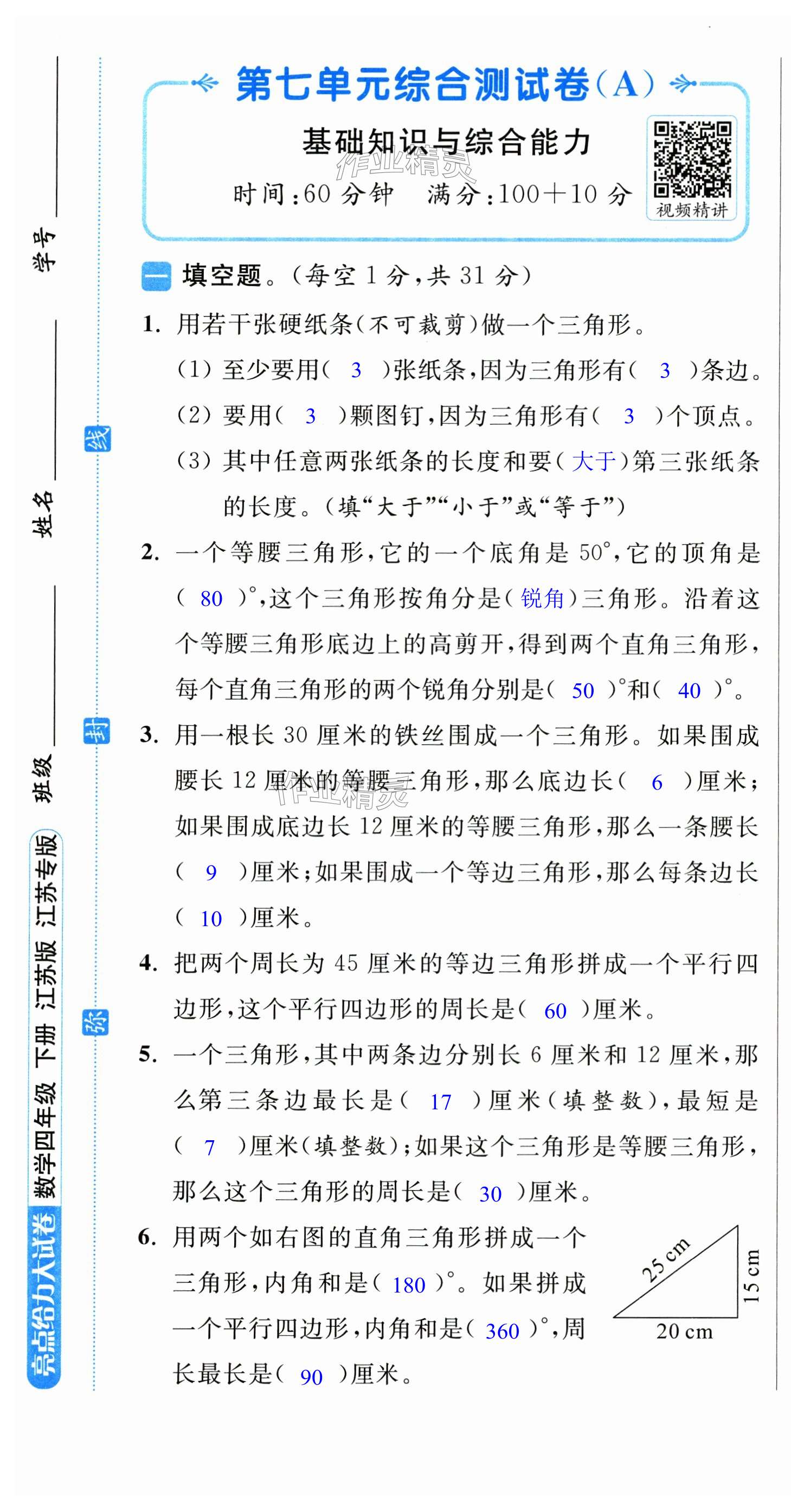 注:目前有些书本章节名称可能整理的还不是很完善,但都是按照顺序排列的,请同学们按照顺序仔细查找。练习册 2025年亮点给力大试卷四年级数学下册苏教版 答案主要是用来给同学们做完题方便对答案用的,请勿直接抄袭。