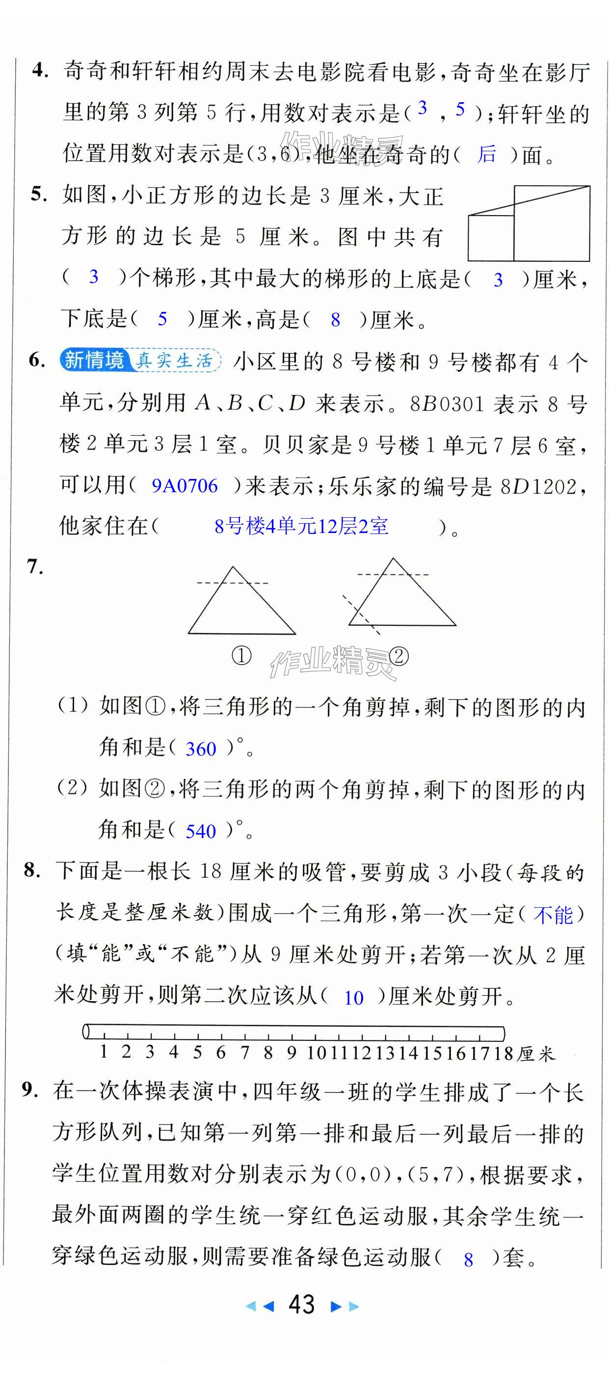 注:目前有些书本章节名称可能整理的还不是很完善,但都是按照顺序排列的,请同学们按照顺序仔细查找。练习册 2025年亮点给力大试卷四年级数学下册苏教版 答案主要是用来给同学们做完题方便对答案用的,请勿直接抄袭。
