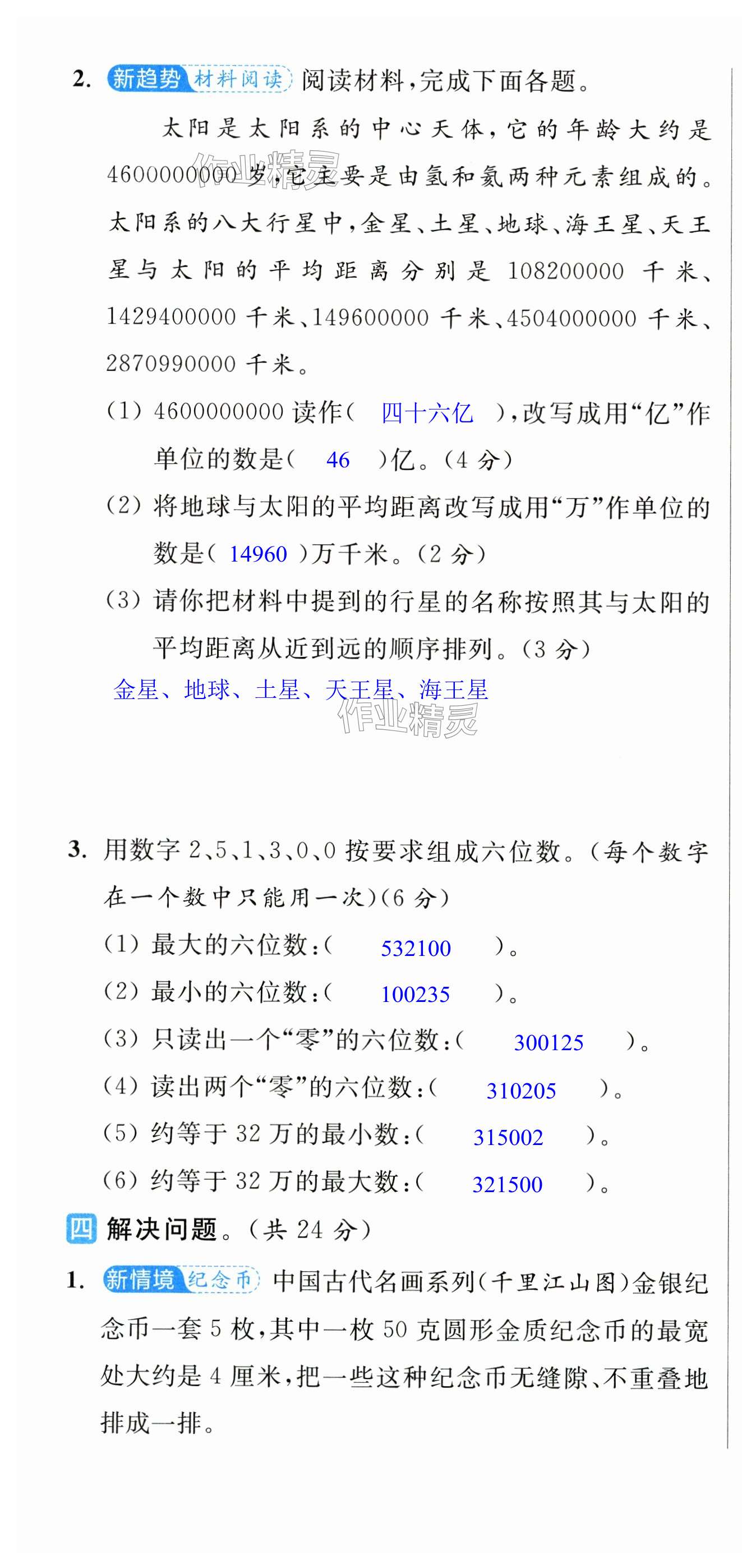注:目前有些书本章节名称可能整理的还不是很完善,但都是按照顺序排列的,请同学们按照顺序仔细查找。练习册 2025年亮点给力大试卷四年级数学下册苏教版 答案主要是用来给同学们做完题方便对答案用的,请勿直接抄袭。
