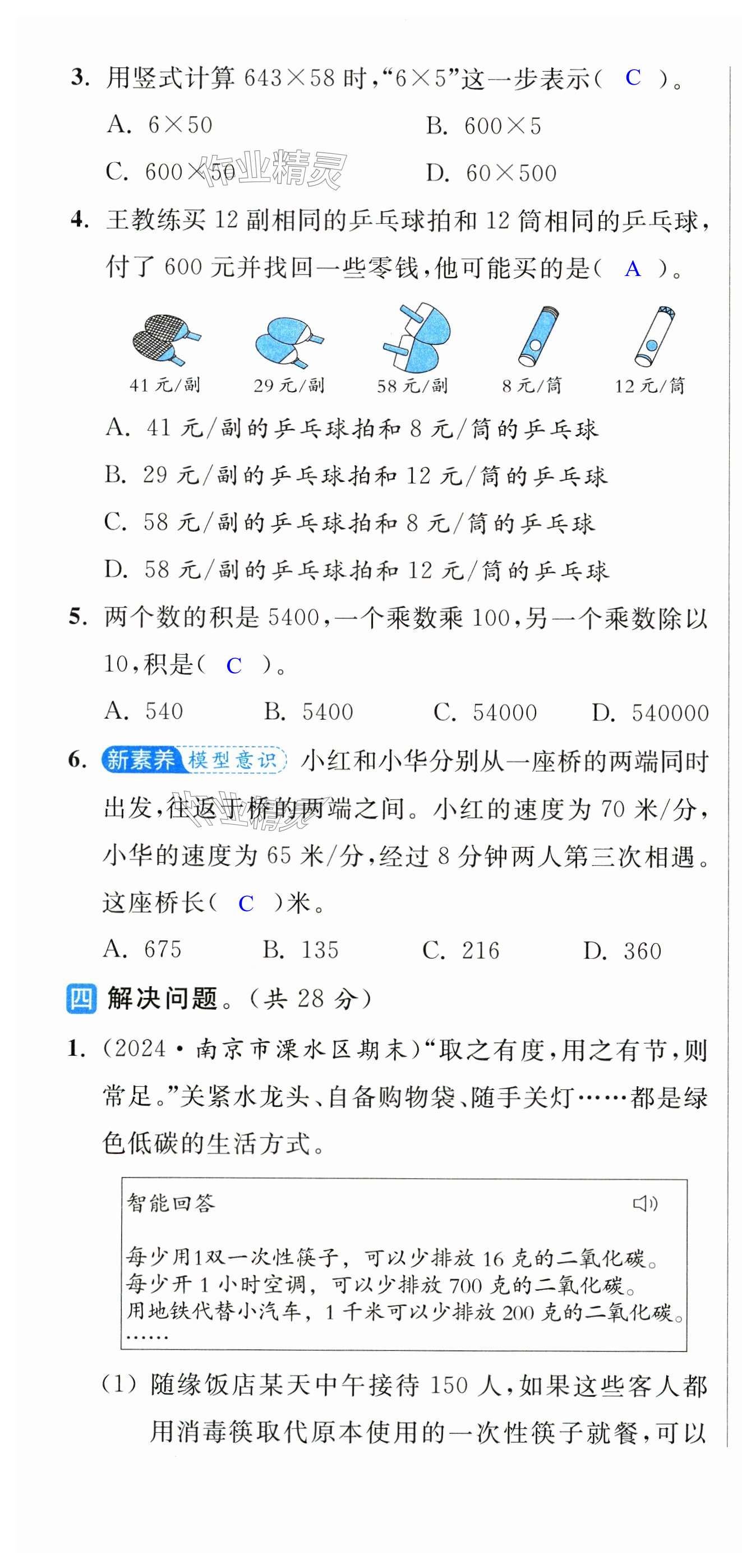 注:目前有些书本章节名称可能整理的还不是很完善,但都是按照顺序排列的,请同学们按照顺序仔细查找。练习册 2025年亮点给力大试卷四年级数学下册苏教版 答案主要是用来给同学们做完题方便对答案用的,请勿直接抄袭。
