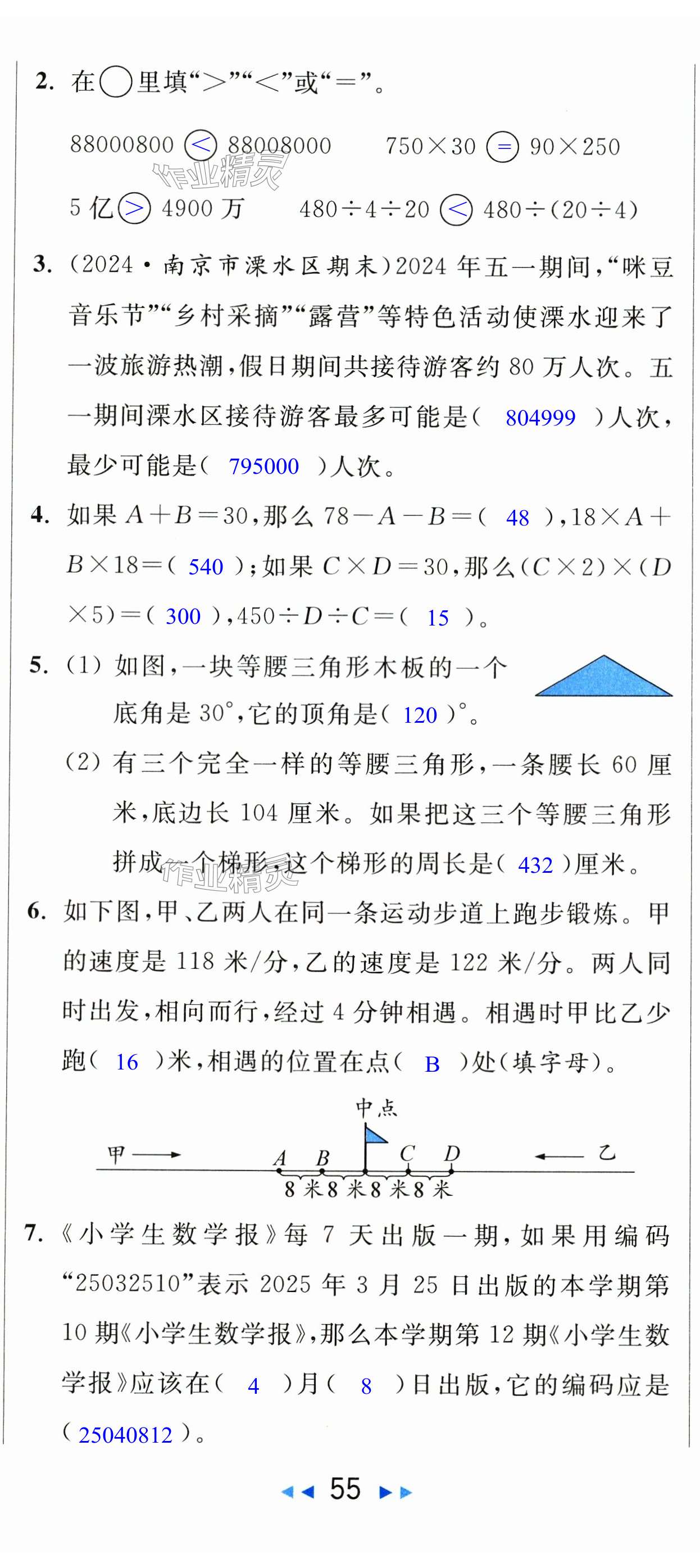 注:目前有些书本章节名称可能整理的还不是很完善,但都是按照顺序排列的,请同学们按照顺序仔细查找。练习册 2025年亮点给力大试卷四年级数学下册苏教版 答案主要是用来给同学们做完题方便对答案用的,请勿直接抄袭。