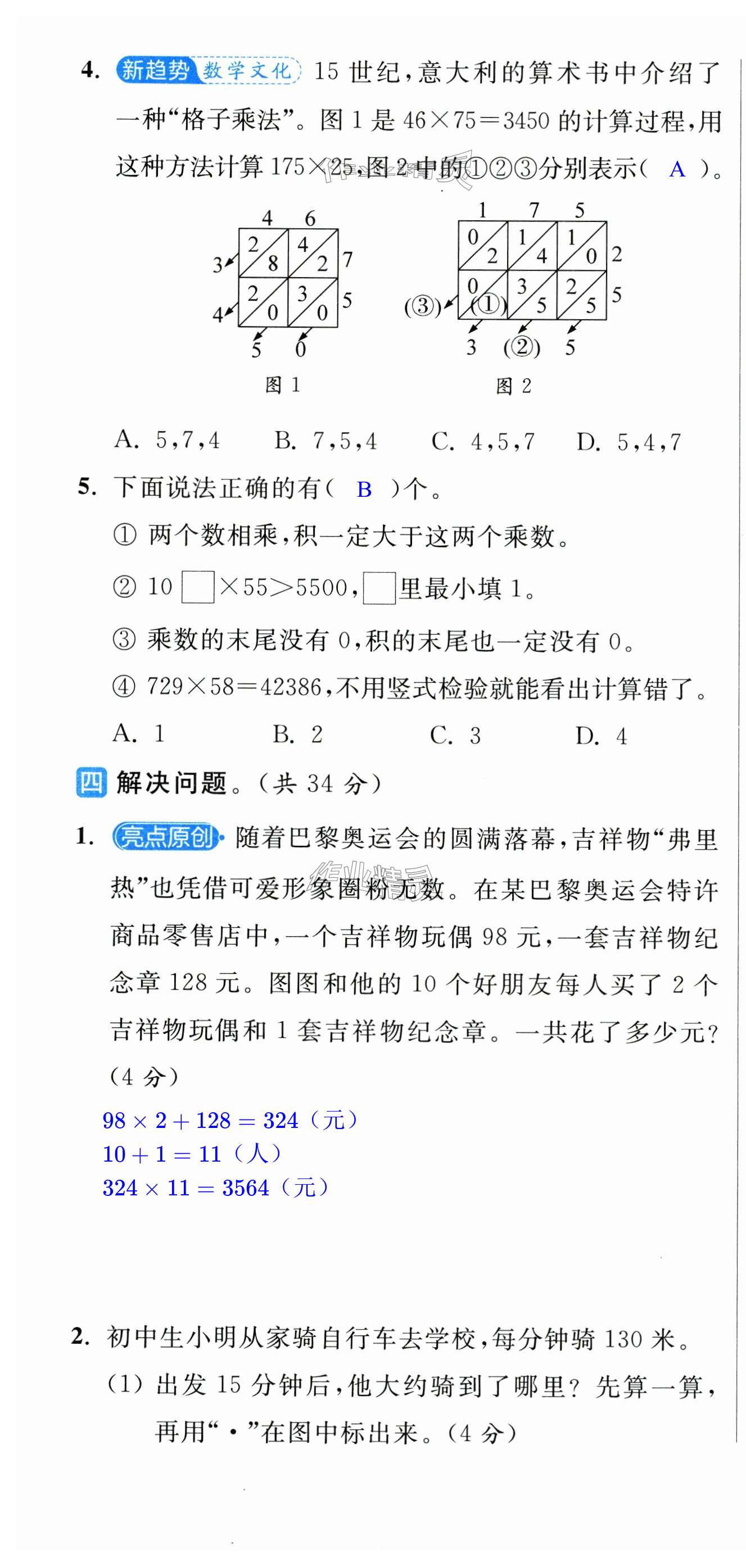 注:目前有些书本章节名称可能整理的还不是很完善,但都是按照顺序排列的,请同学们按照顺序仔细查找。练习册 2025年亮点给力大试卷四年级数学下册苏教版 答案主要是用来给同学们做完题方便对答案用的,请勿直接抄袭。