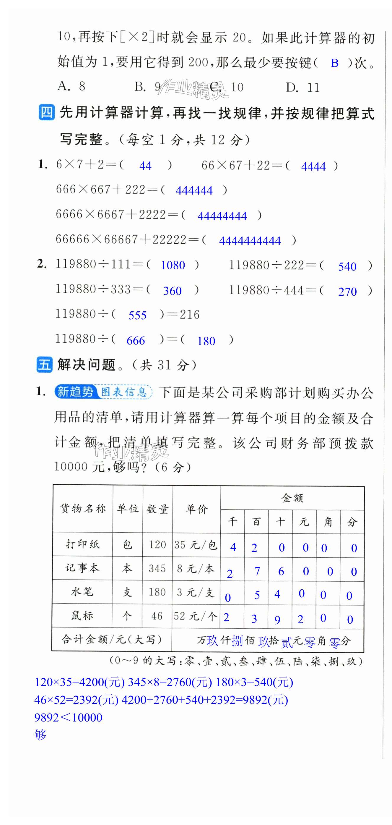 注:目前有些书本章节名称可能整理的还不是很完善,但都是按照顺序排列的,请同学们按照顺序仔细查找。练习册 2025年亮点给力大试卷四年级数学下册苏教版 答案主要是用来给同学们做完题方便对答案用的,请勿直接抄袭。