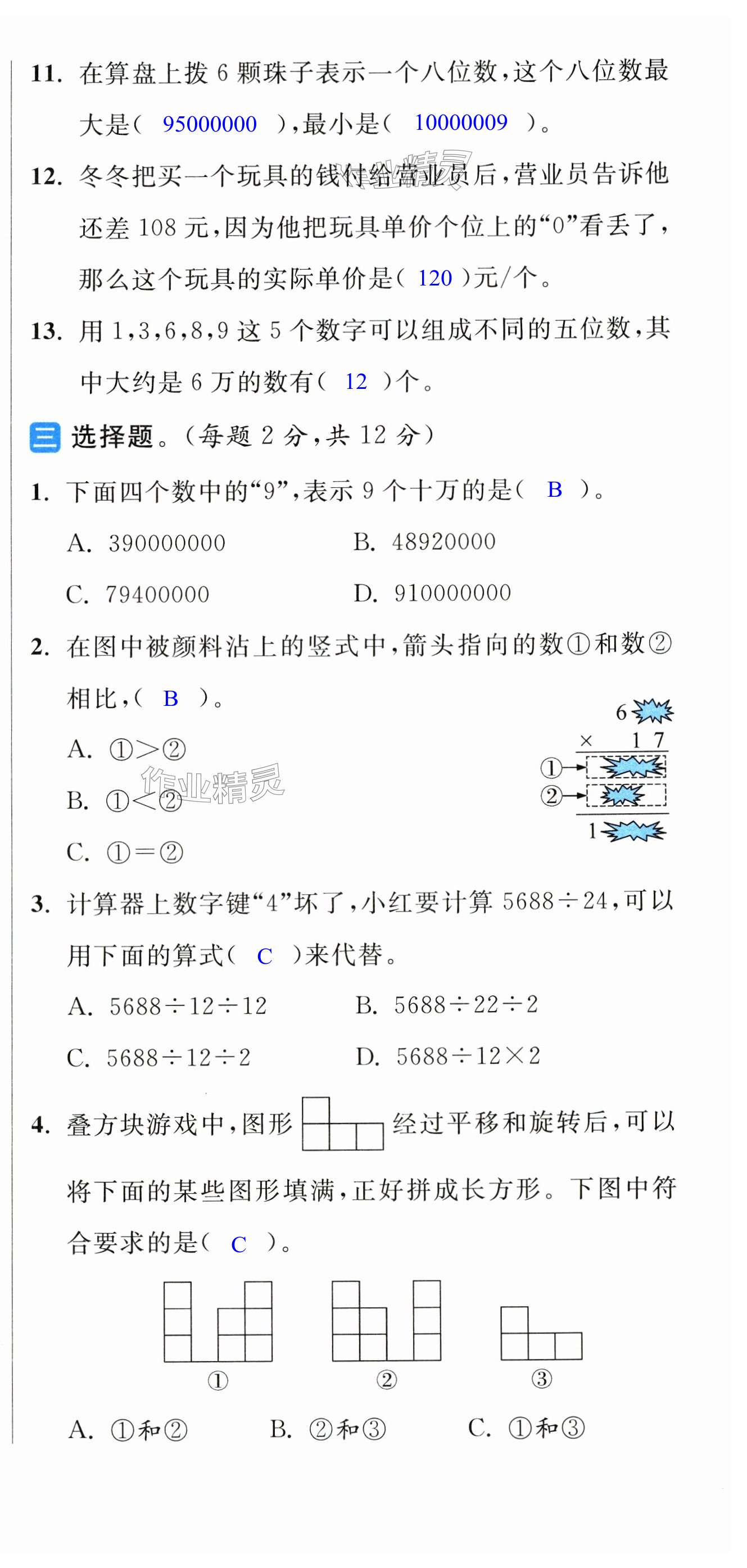 注:目前有些书本章节名称可能整理的还不是很完善,但都是按照顺序排列的,请同学们按照顺序仔细查找。练习册 2025年亮点给力大试卷四年级数学下册苏教版 答案主要是用来给同学们做完题方便对答案用的,请勿直接抄袭。