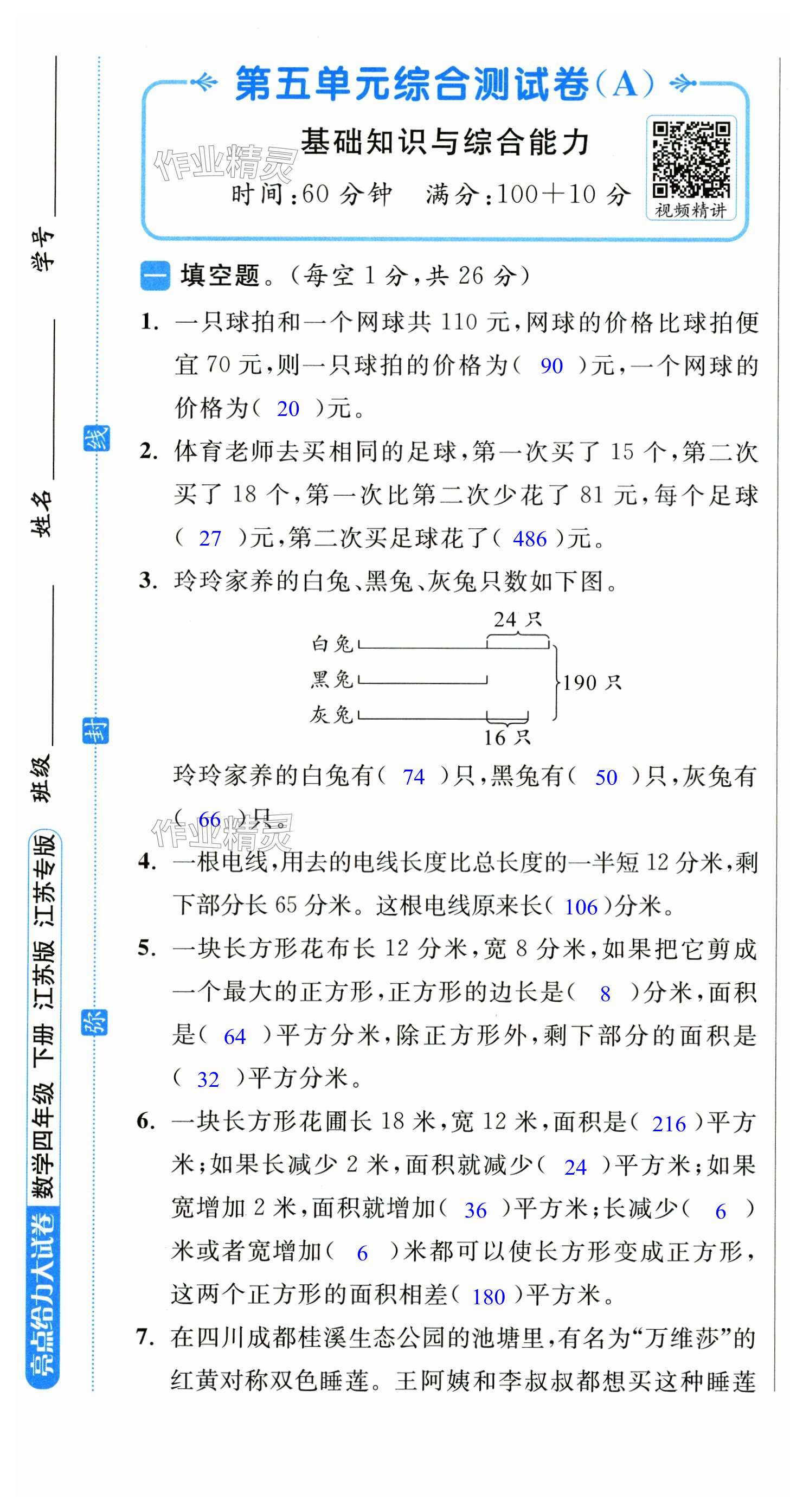 注:目前有些书本章节名称可能整理的还不是很完善,但都是按照顺序排列的,请同学们按照顺序仔细查找。练习册 2025年亮点给力大试卷四年级数学下册苏教版 答案主要是用来给同学们做完题方便对答案用的,请勿直接抄袭。
