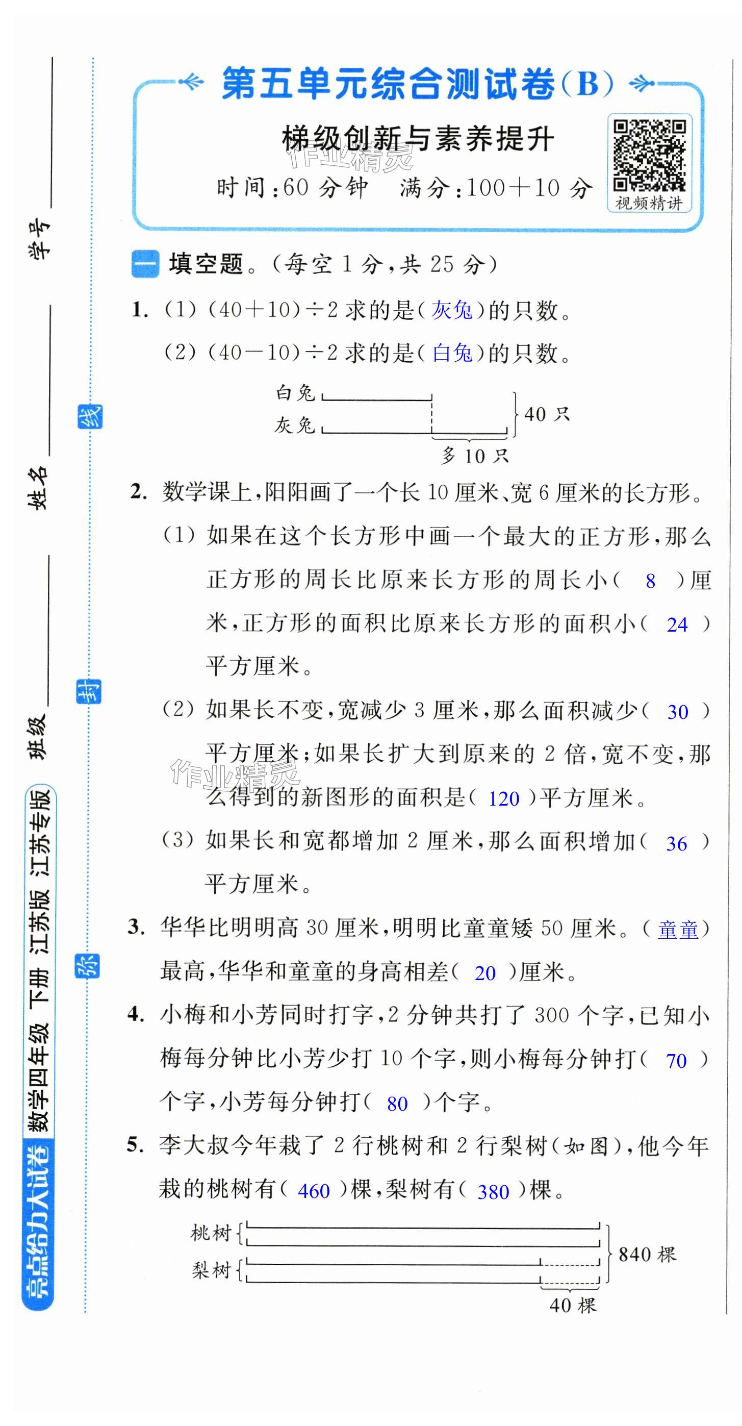 注:目前有些书本章节名称可能整理的还不是很完善,但都是按照顺序排列的,请同学们按照顺序仔细查找。练习册 2025年亮点给力大试卷四年级数学下册苏教版 答案主要是用来给同学们做完题方便对答案用的,请勿直接抄袭。