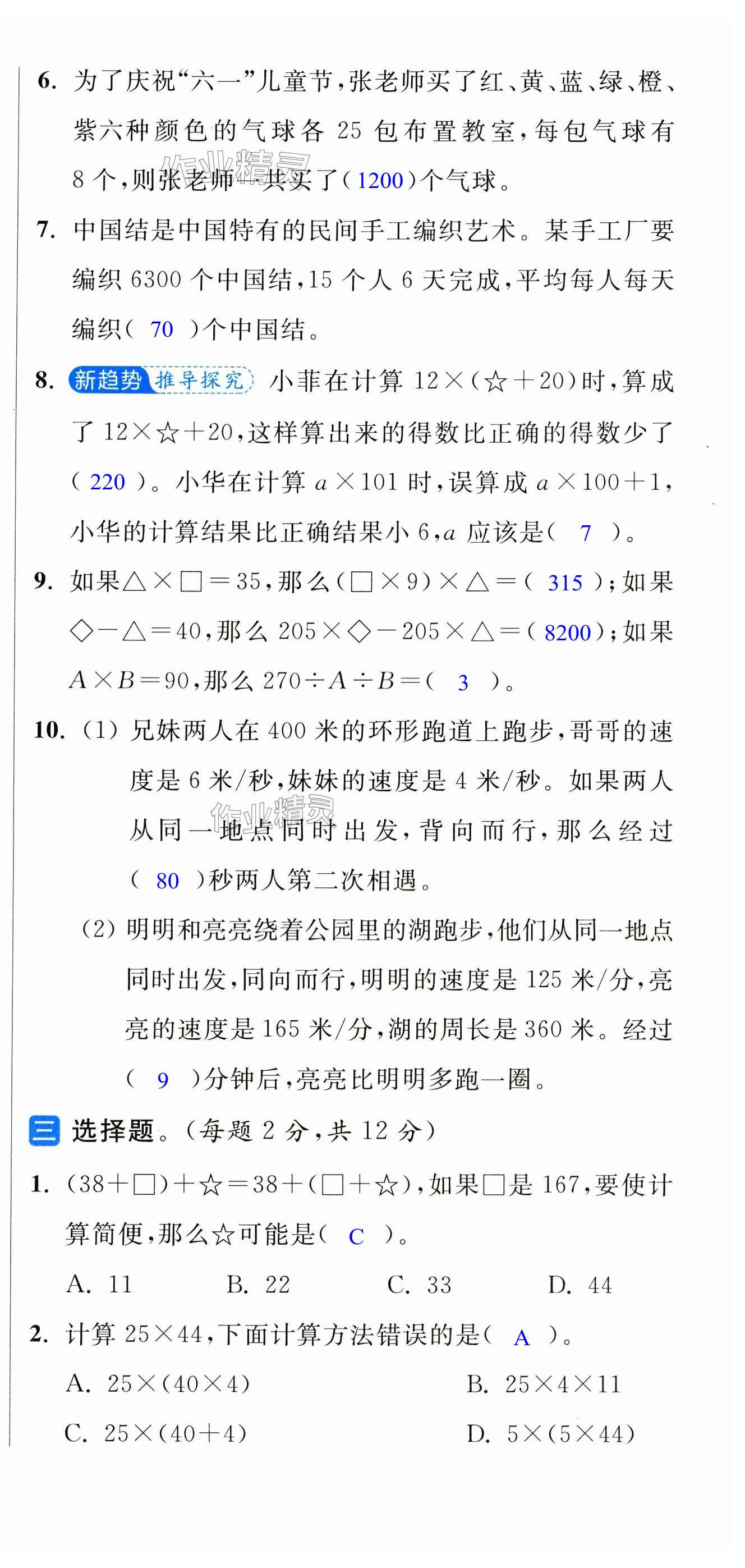 注:目前有些书本章节名称可能整理的还不是很完善,但都是按照顺序排列的,请同学们按照顺序仔细查找。练习册 2025年亮点给力大试卷四年级数学下册苏教版 答案主要是用来给同学们做完题方便对答案用的,请勿直接抄袭。