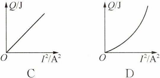 (2)焦耳做了大量与上述类似的探究实验,确定了电流产生的热量跟电流、电阻和通电时间的关系,一段时间内,定值电阻产生的热量Q与电流的平方I²的关系可用下列图像中的________表示.