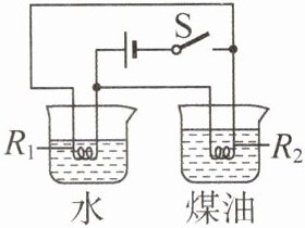 7. 如图所示,在左、右两个相同烧杯中分别装有质量和温度都相同的水和煤油,通电一段时间后,两容器中的液体同时升温到60 ℃. 由此可知 ( )