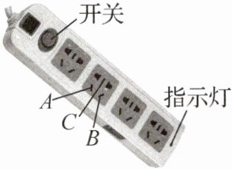 5. 如图是常用的插线板,闭合开关,指示灯发光,且插孔可以提供工作电压. 下列说法正确的是( )