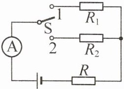 4. 如图所示,定值电阻$R_{1} = 8$ Ω,$R_{2} = 6$ Ω,电源电压为8 V,$R$为定值电阻. 开关S接1时,电流表的示数为0.4 A,该电路工作5 min电流做的功为________J. 开关S接2时,电阻$R$的电功率________(选填“不变”“变大”或“变小”).