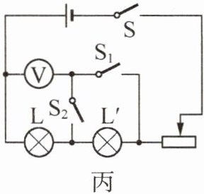 (3)实验结束后,小悦又发现了旁边有一个标有额定电流为0.3 A的小灯泡L',于是灵机一动,又设计出了如图丙所示电路.利用电压表和小灯泡L,根据上述实验结果测量出了小灯泡L'的额定功率,请你将实验过程补充完整.
