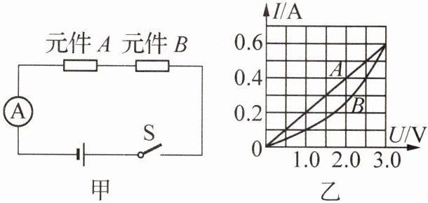 7. 现有两个电路元件A和B,把它们串联接在电路中,如图甲所示,通过两元件的电流与其两端电压的关系如图乙所示. 闭合开关S,电流表的示数为0.4 A,则在相同时间内,电流通过A、B两元件做的电功之比为 ( )