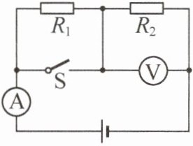 6. 在如图所示的电路中,已知R₂ = 20 Ω,电源电压保持不变,当S闭合时,电流表示数为0.3 A,当S断开时,电流表示数为0.2 A. 求: