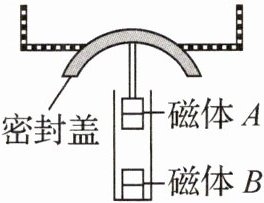 4. 下水道口常有异味,这是________现象;室内会装地漏防止这一现象,如图所示是一款磁悬浮地漏的结构图. 当密封盖上方无水时,磁体A将密封盖顶起,防止臭气外漏. 若磁体A下端为N极,则磁体B上端为________极.