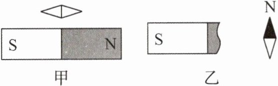 9. (2024·广东广州一模)一条形磁体附近有一个小磁针,小磁针静止时的指向如图甲所示. 请在图甲中标出小磁针的N极;若此条形磁体断成两部分,把小磁针放在其中一部分旁,如图乙所示,则小磁针将________(选填“顺时针”或“逆时针”)转动90°后静止.