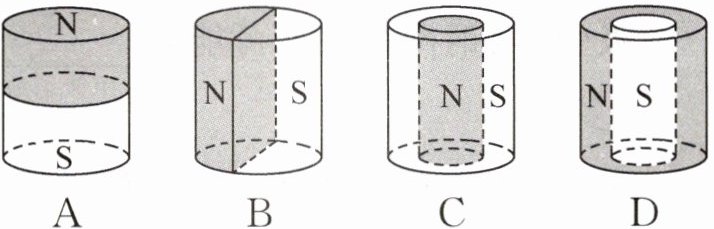 11. (2024·江苏盐城三模)某兴趣小组发现一种椭球形磁铁,他们想知道该磁体的磁极分布情况,于是提出了以下三种猜想: