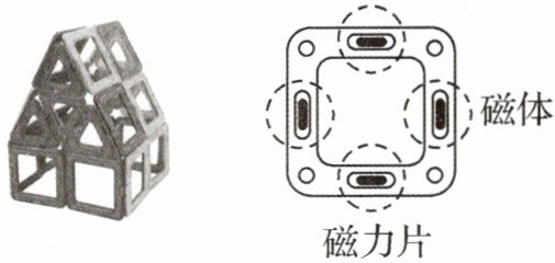 7. 磁力片是一种能拼出各种造型的玩具. 每块磁力片的四条塑料边内各有一个可旋转的圆柱形磁体,如图所示,任意两块磁力片的塑料边靠近均能相互吸引. 下列图示该磁体磁极的分布最合理的是 ( )