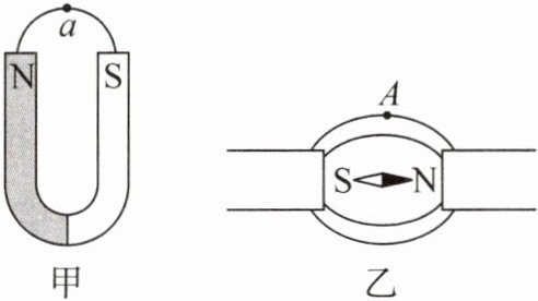 (2)(2024·江苏苏州一模)如图乙所示,请根据小磁针静止时的指向,标出A点的磁感线方向和磁体的N、S极.