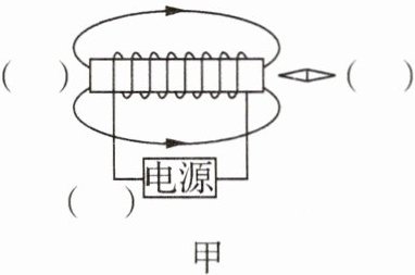 (1)(2024·四川内江)如图甲,小磁针静止在通电螺线管右侧,请根据图中磁感线的方向,在螺线管左端和小磁针右端的括号内标出极性(“N”或“S”),在电源左边的括号内标出极性(“+”或“-”).