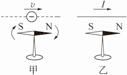 13. 新素养 科学思维 如图甲所示,电子水平向右飞过小磁针正上方时,实验现象:小磁针的N极向纸外发生偏转. 若将一通电直导线放在小磁针正上方或正下方,如图乙所示(图中只画出了通电直导线放在小磁针正上方的情况),请你根据图甲的实验现象,判断下列分析正确的是(不考虑地磁场的影响) ( )