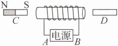 2. 如图所示,电磁铁左侧的C为条形磁体,右侧的D为软铁棒,A是电源的正极. 则下列判断正确的是 ( )