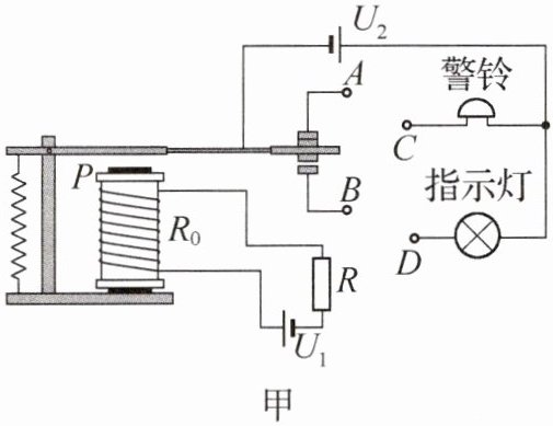 (3)图甲中警铃的接线柱C应与接线柱________(选填“A”或“B”)相连.