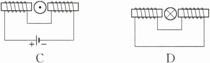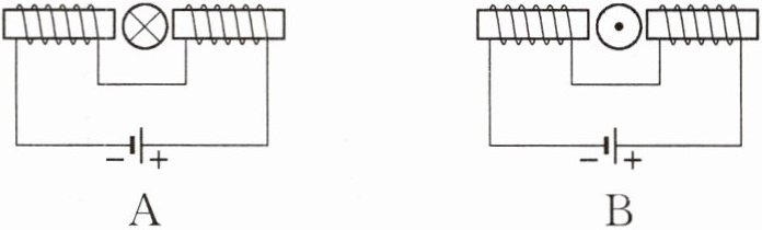 D. 将一枚小磁针放在电磁铁$B$端旁,静止时,它的 N 极指向电磁铁$B$端